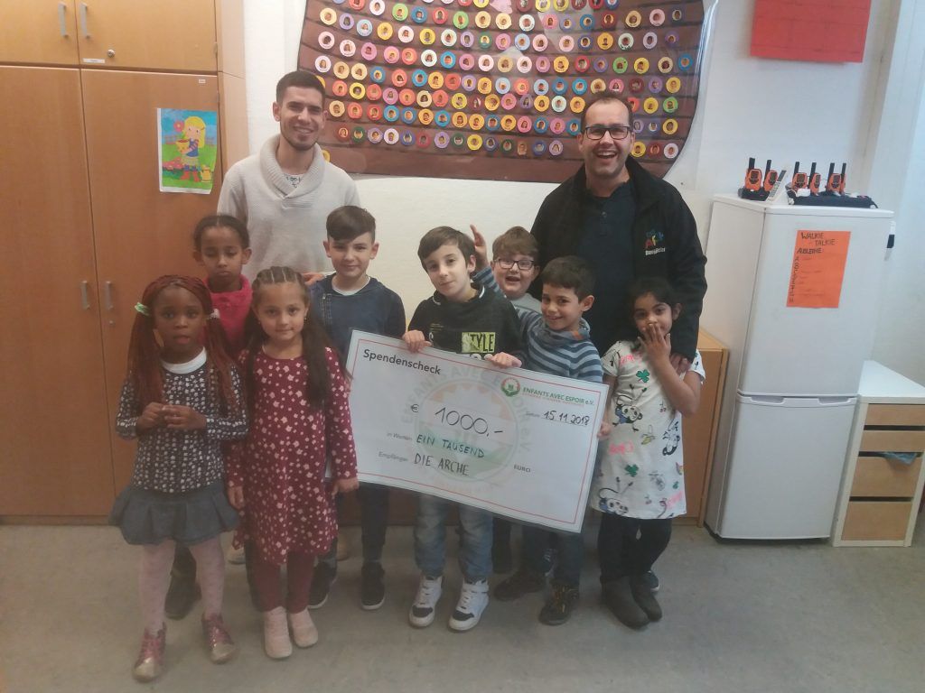 Es ist kalt und dunkel. Verschlafen schlendert das Kind in ein warmes und helles Wohn- oder Esszimmer. Dort warten bereits Mama und/oder Papa, der Frühstückstisch ist gedeckt. Gestärkt und mit guten Wünschen für den Schultag sowie einem Pausenbrot gewappnet, verlässt das Kind schließlich das Haus – zur Schule. Viele von uns – Bürgern in Deutschland – haben ein solches oder ähnliches Bild vor Augen, wenn sie an die dunklen und kalten Morgen vor Schulbeginn zurückdenken – ich inklusive. Und dafür bin ich sehr dankbar. Vielen von uns – Bürgern in Deutschland – bleibt ein solches Szenario jedoch verwehrt. So auch zahlreichen Schülern der Berthold- Otto-Grundschule im Frankfurter Stadtteil Griesheim. Manchmal ist da niemand zuhause, wenn sie morgens aufwachen – schon weg zur Arbeit. Oder die Eltern bzw. die alleinerziehende Mutter schlafen, da sie Spät- oder Nachtschicht hatte(n). Vorbereitetes Frühstück – Fehlanzeige. Oft ist auch noch der Kühlschrank leer, da es tatsächlich am nötigsten mangelt. Oder: das hart erarbeitete Einkommen wird gespart, um sich schließlich moderne Statussymbole anzuschaffen. Ein schicker Wagen vor der Tür, ein neues Smartphone, HD-Fernseher und Playstation müssen es schon sein, damit Eltern und Kind heutzutage „dazugehören“. Die Prioritäten haben sich teils komplett verschoben. So geht das Schulkund oft mit leerem Magen und ohne eine positive Aufmunterung, ohne den wärmenden Empfang eines Lächelns oder gar einer Umarmung aus dem Haus. Keine guten Voraussetzungen, um bis zu 5 Stunden in der Schule konzentriert und aufmerksam im Deutsch- und Mathe-Unterricht aufzupassen und gar knifflige Aufgaben zu lösen. Nicht selten geht damit verbunden auch der Spaß am Lernen bzw. die Sinnhaftigkeit dieser Lebensaufgabe verloren. Keine guten Voraussetzungen für ein gutes Schuljahr und eine erfolgreiche Schulzeit. Mit allen Konsequenzen, die sich daraus für das Kind ergeben können. Und hier setzt nun DIE ARCHE – Christliches Kinder- und Jugendwerk e.V. an. Nach dem Motto von Regionalleiter und Mitbegründer Daniel Schröder – „Am nachhaltigsten ist die tägliche Mahlzeit.“ – sorgt sich DIE ARCHE mit vier Standorten in Frankfurt am Main um vernachlässigte Schulkinder. Damit verbunden auch um die (sprachliche) Integration der oft aus nicht-deutschsprachigen Haushalten stammenden Schüler. Speziell DIE ARCHE Frühbetreuung der Berthold-Otto-Grundschule wird – nun seit August 2011 – morgens (von 7h30 bis 9h) von 80 bis 100 Schülern (1.-5. Klasse) aufgesucht. Sie erhalten Frühstück, Wärme, Geborgenheit und ein nicht zu unterschätzendes Pausenbrot für den Schultag. Die Kinder sind der ARCHE sehr dankbar. Ihre Eltern auch. Wir von Enfants avec Espoir e.V. haben nun beschlossen, DIE ARCHE Frühbetreuung in der Berthold-Otto-Grundschule in Griesheim im Rahmen der Pilotphase unseres neuen Projekts „ Wir Runden Ab “ zu unterstützen. Am 15.11.2018 überreichte der „Engel“ André Luiz Burmann dem „Helden“ Daniel Schröder stellvertretend für das Projekt der ARCHE in Griesheim einen Spendenscheck von 1000,- €. 500,- € sind für die Bereitstellung von Frühstück und Pausenbrot für 100 Schüler in den Räumlichkeiten der ARCHE in der Berthold-Otto-Grundschule an 5 Schultagen (1 Schulwoche) vorgesehen. Die weiteren 500,- € dienen als Zuschuss für das Oster-Feriencamp, das DIE ARCHE im Frühjahr in einem Freizeitheim in Bad Hersfeld veranstalten wird. Circa 100 Grundschüler freuen sich dort auf neue Erkenntnisse, Erlebnisse, Gemeinschaften und Freundschaften sowie Abenteuer in der Natur – ein Wochenende lang fernab des oft eher monotonen Alltags. Wir wünschen allen Beteiligten gutes Gelingen und vor allem den Grundschülern ein schönes und erfolgreiches Schuljahr! André Luiz Burmann Enfants avec Espoir e.V.